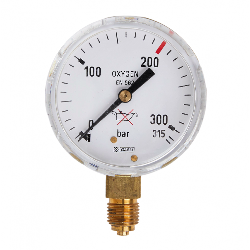 Μανόμετρο Φ.63 με σπείρωμα 1/4" στην περίμετρο, κατάλληλο για οξυγόνο από 16 έως 315 bar