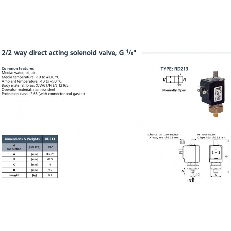 Ηλεκτροβαλβίδα δίοδη 1/8" RD 213 CVG M&M normally open