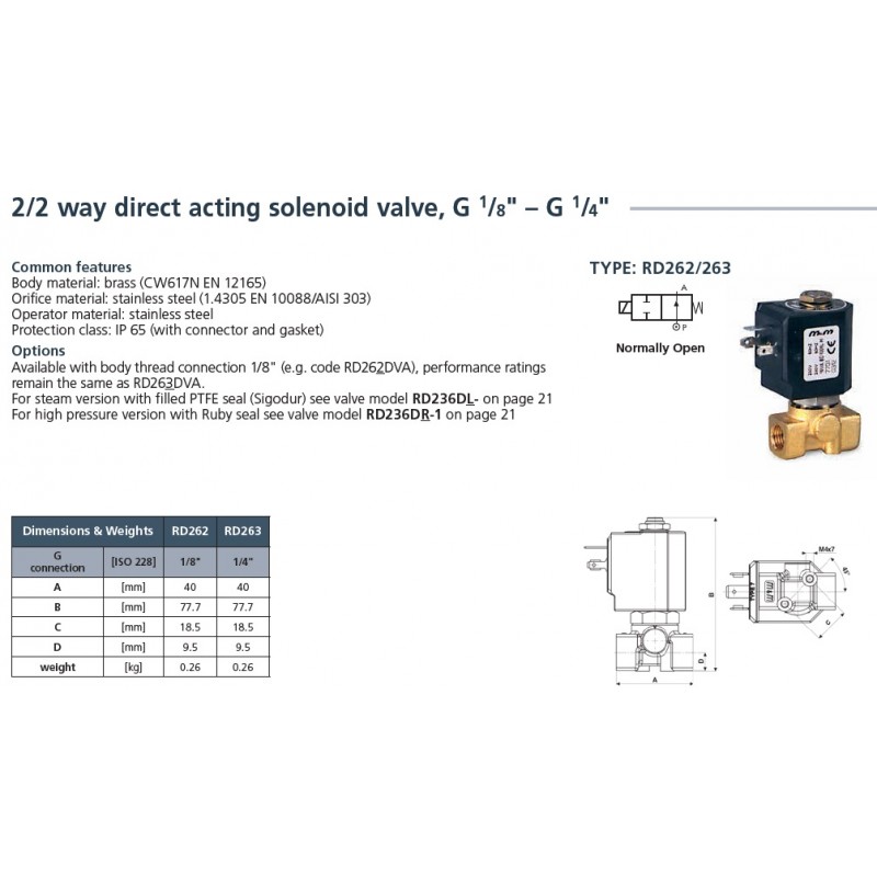 Ηλεκτροβάνα δίοδη 1/4" RD 263 DVH M&M normally open