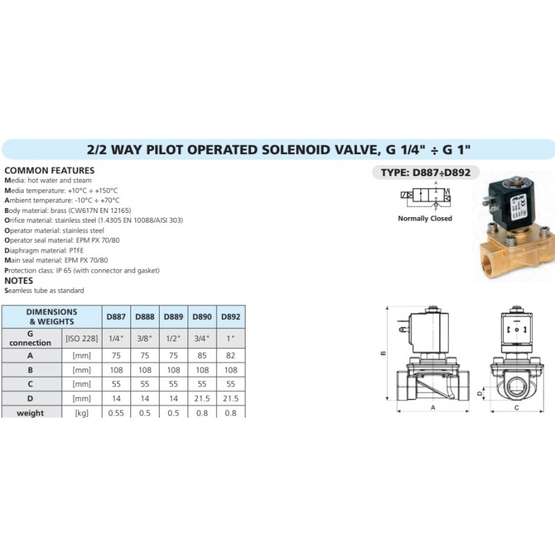 Ηλεκτροβαλβίδα δίοδη 1/2" D 889 DPV M&M normally closed ατμού