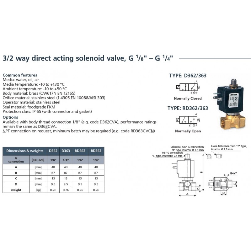 Ηλεκτροβάνα τρίοδη 1/4" D 363 CVE M&M normally closed